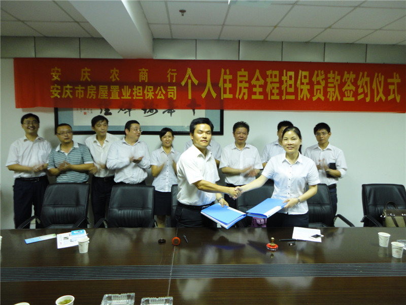 為促進安慶房地產市場健康平穩(wěn)發(fā)展,滿足我市居民居住性和改善性購房按揭貸款需求,安慶市房屋置業(yè)擔保公司不斷拓寬思路,創(chuàng)新業(yè)務品種,9月28日與安慶獨秀農商行簽訂了《個人住房按揭全程擔保貸款合作協(xié)議》。安慶獨秀農商行董事長韋道德、行長李春香,安慶市房屋置業(yè)擔保公司董事長、總經(jīng)理沈軍、監(jiān)事長、支部書記劉芳等合作雙方單位相關人員參加簽約儀式。